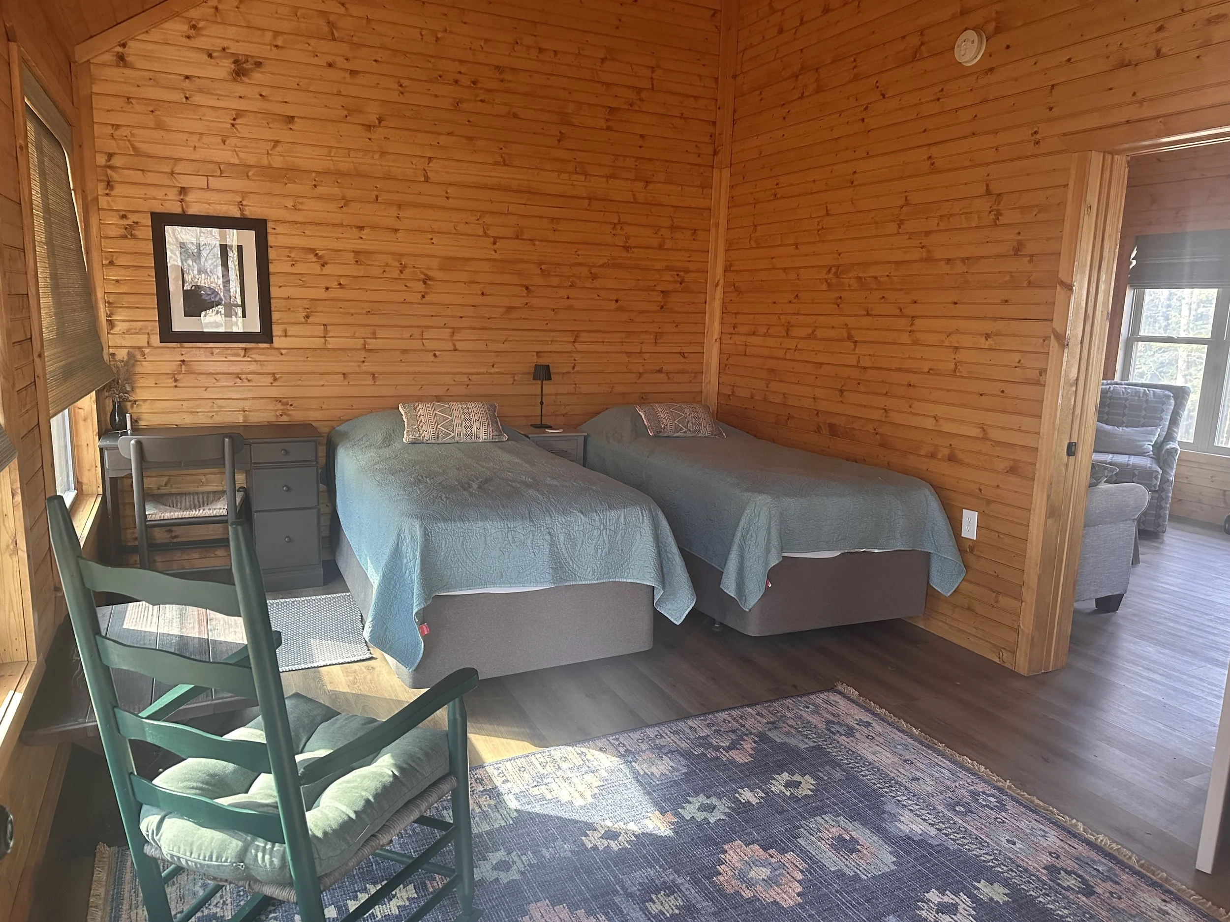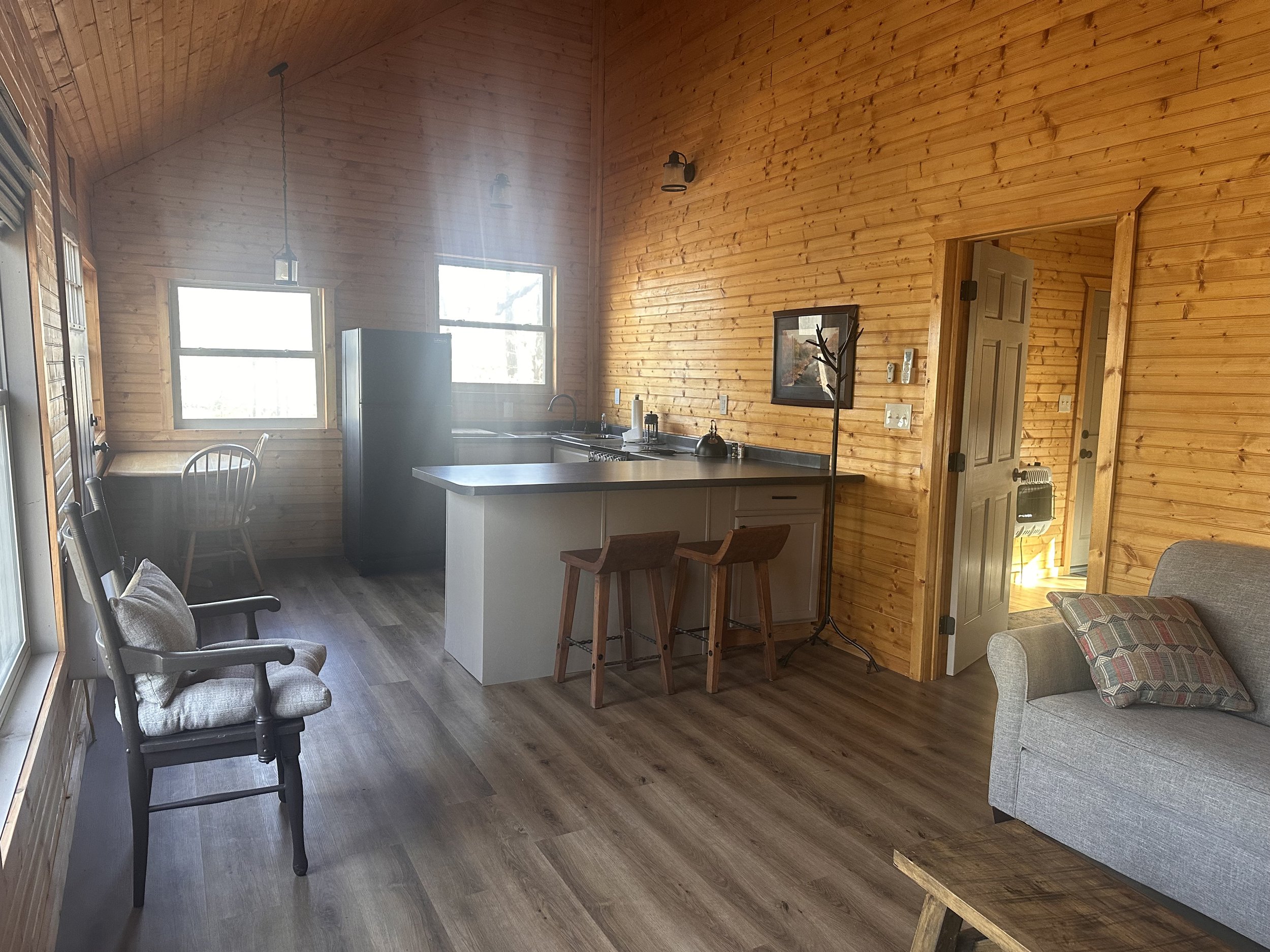 In the woodland, fringing Cold Springs Lake and located down the hill from Bethany Lodge are Hope and Love Cabins which sleep up to 4 people each. The cabins have one bedroom with twin beds that can be made into a King upon request with a full bathroom, living area, kitchenette, and dining space. There is a screened porch connected to the bedroom side of the cabins which have a private view of the lake and forest. Hope and Love also have a sofa bed for a small family, a propane heater for Autumn, Winter, and Spring seasons and air conditioning for summer months.